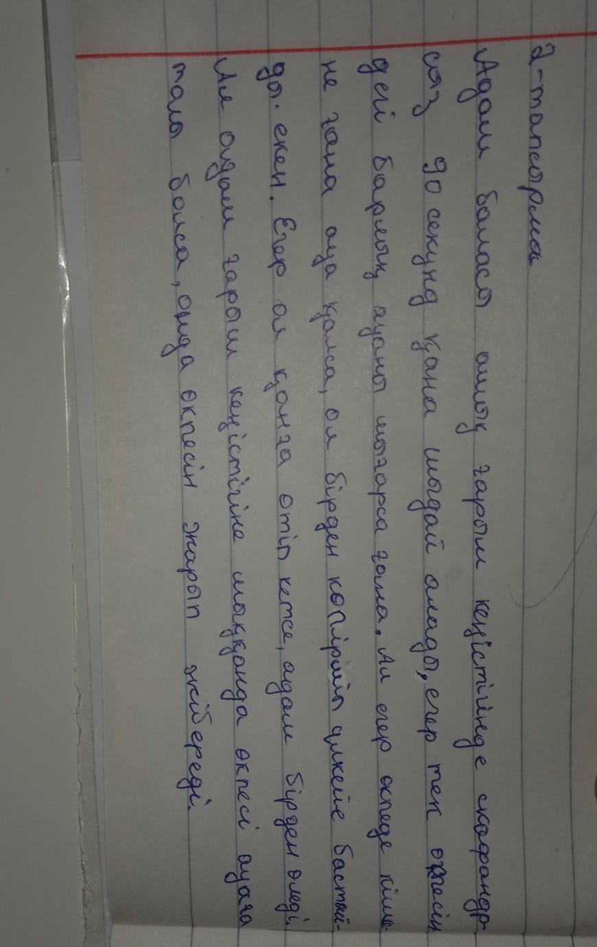 2-тапсырма. Берілген мәтіндегі қате жазылған сөздерді анықтап, сөздікті пайдалана отырып түзетіп, көшіріп жазыңыз.Адам баласы ашығ қарыш кеністікінде скафандрсыз 90 секунд қана шыдаи алады, егер тек өгпесіндегі барлық ауаны шығарса ғана. Ал егер өгпеде кішгене ғана ауа ғалса, ол бірден көпіршіб үлкейе бастайды екен. Егер ол қанға өтіп кетсе, адам бірден өледі. Ал адам қарыш кеністікіне шыққанда, өгпесі ауаға толы болса, онда өгпесін жарып жібереді.