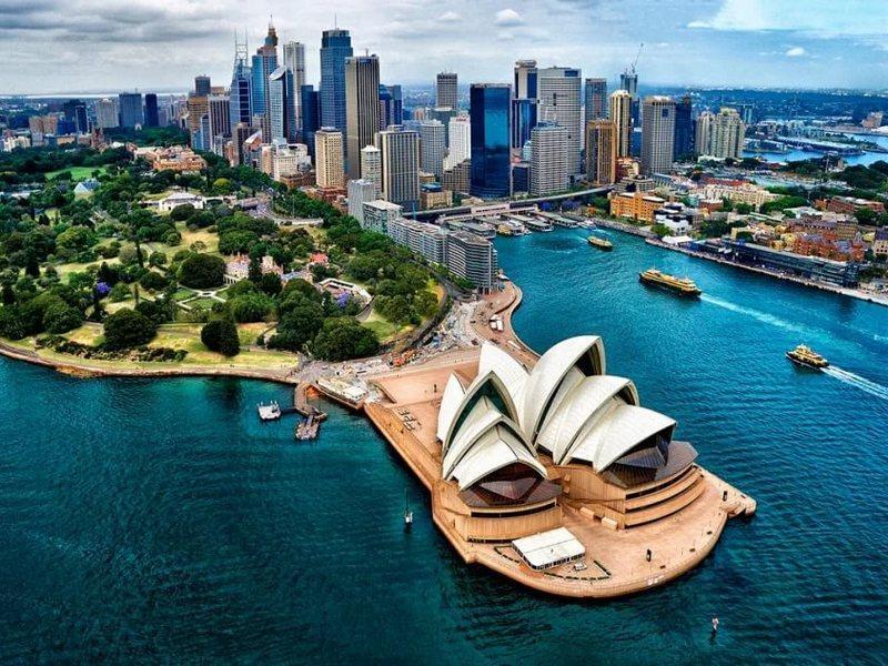 на фото изображён оперный театр в городе Сидней (Австралия)