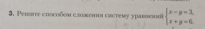 решите способом сложения систему уравнений {x-y=3 {x+y=6