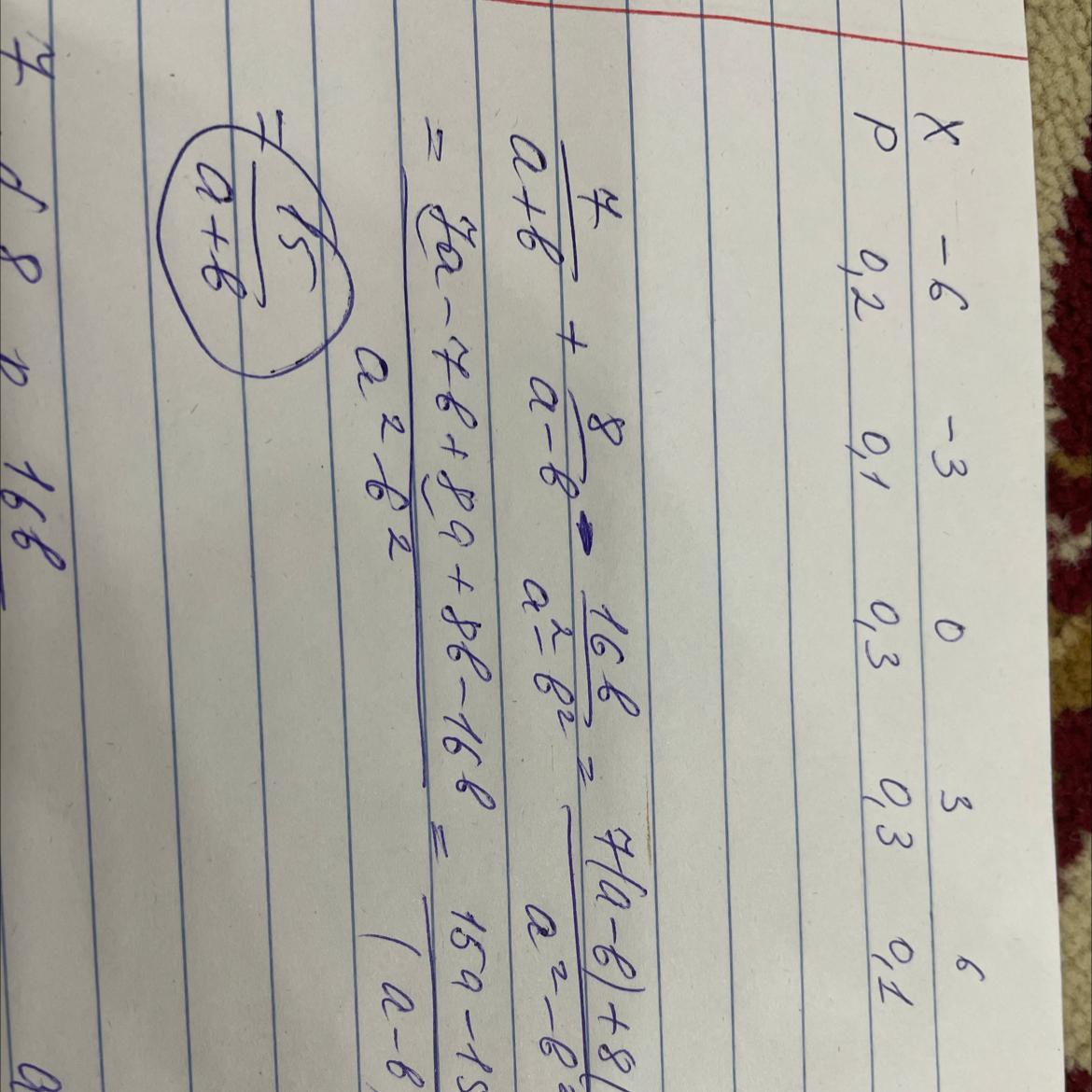 7/a+b+8/a-b-16b/a^2-b^2 при а=0,05 b=-00,4