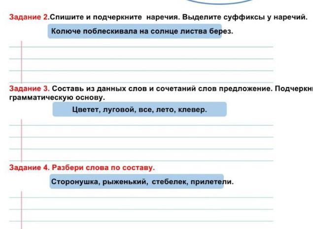 Всё лето цветёт луговой клевер- основа слова: цветёт 2 линий клевер 1 линия