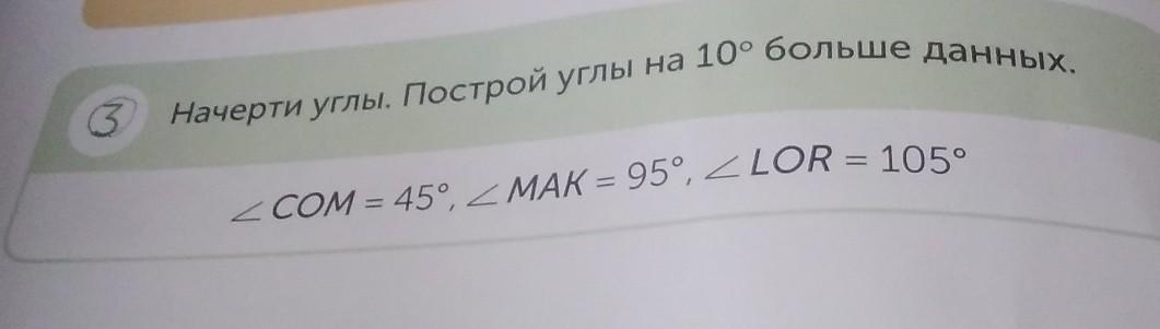 Ответ:Строить нужно с помощью транспортира ;добавлять +10градусов ;45+10=55градусов
