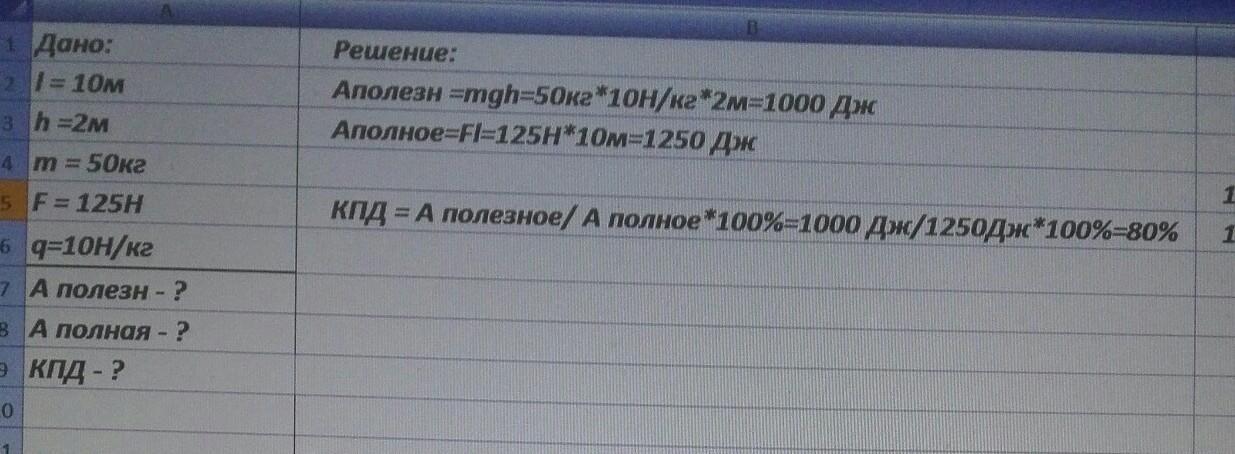 в) Определите эффективность наклонной плоскости