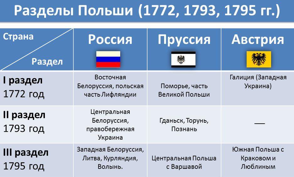 Вот хорошая картинка, иллюстрирующая специфику разделов Польши.