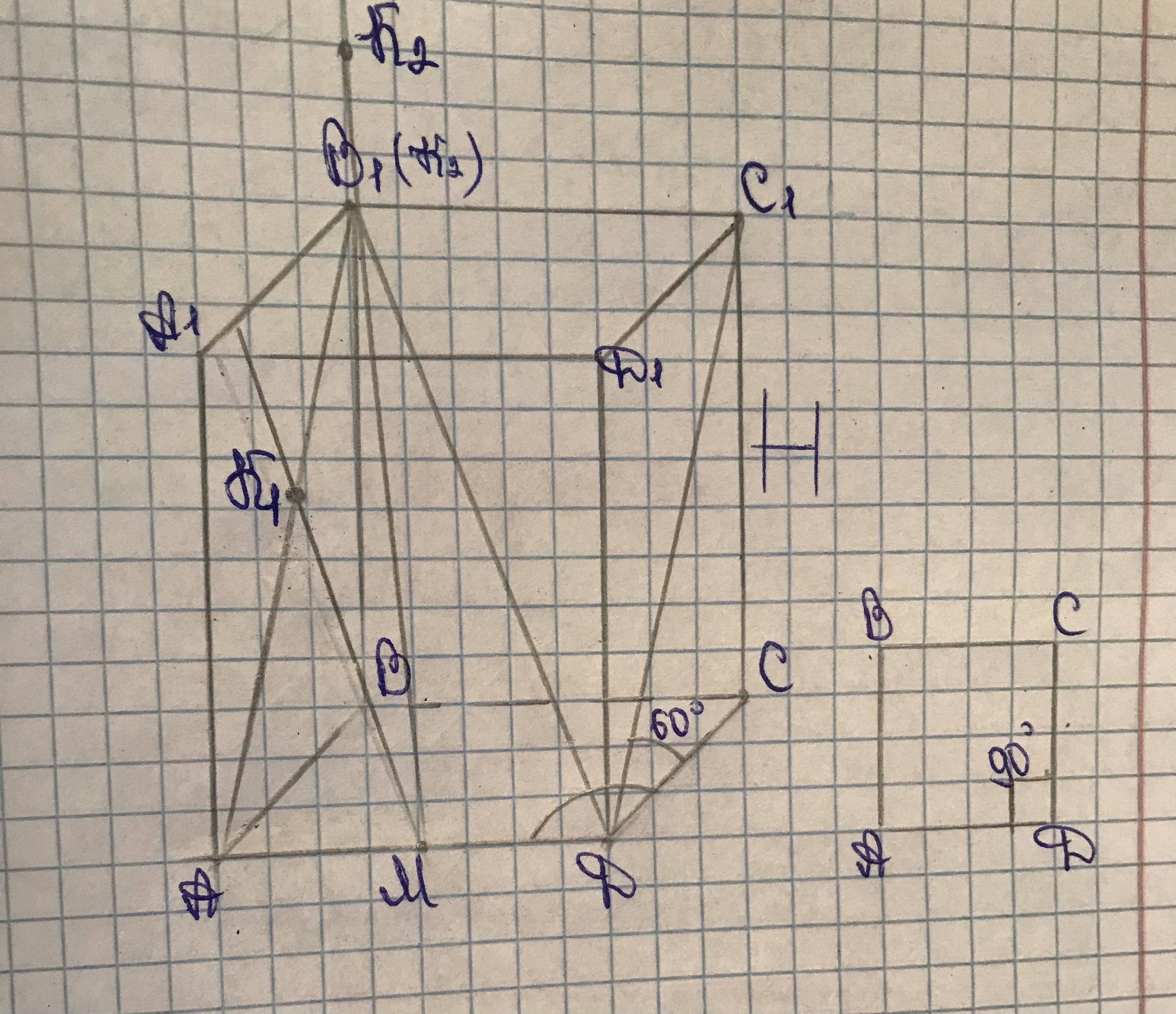 б) Пусть плоскость A B1C1D наклонена к плоскости основания под углом 600. Выразите высоту АА1призмы через ребро основания.