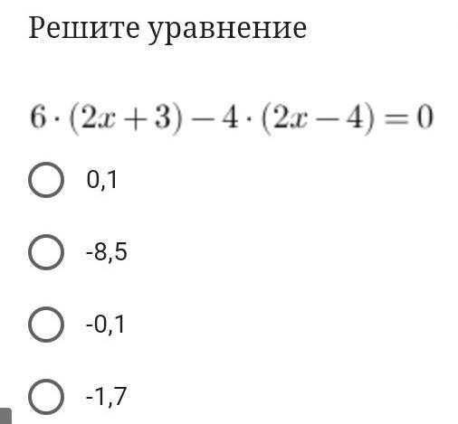 6(2х+3)-4(2х-4)=0