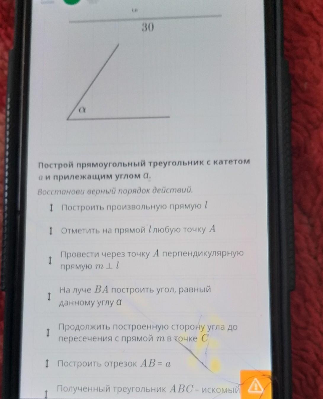 Построй прямоугольный треугольник с катетом