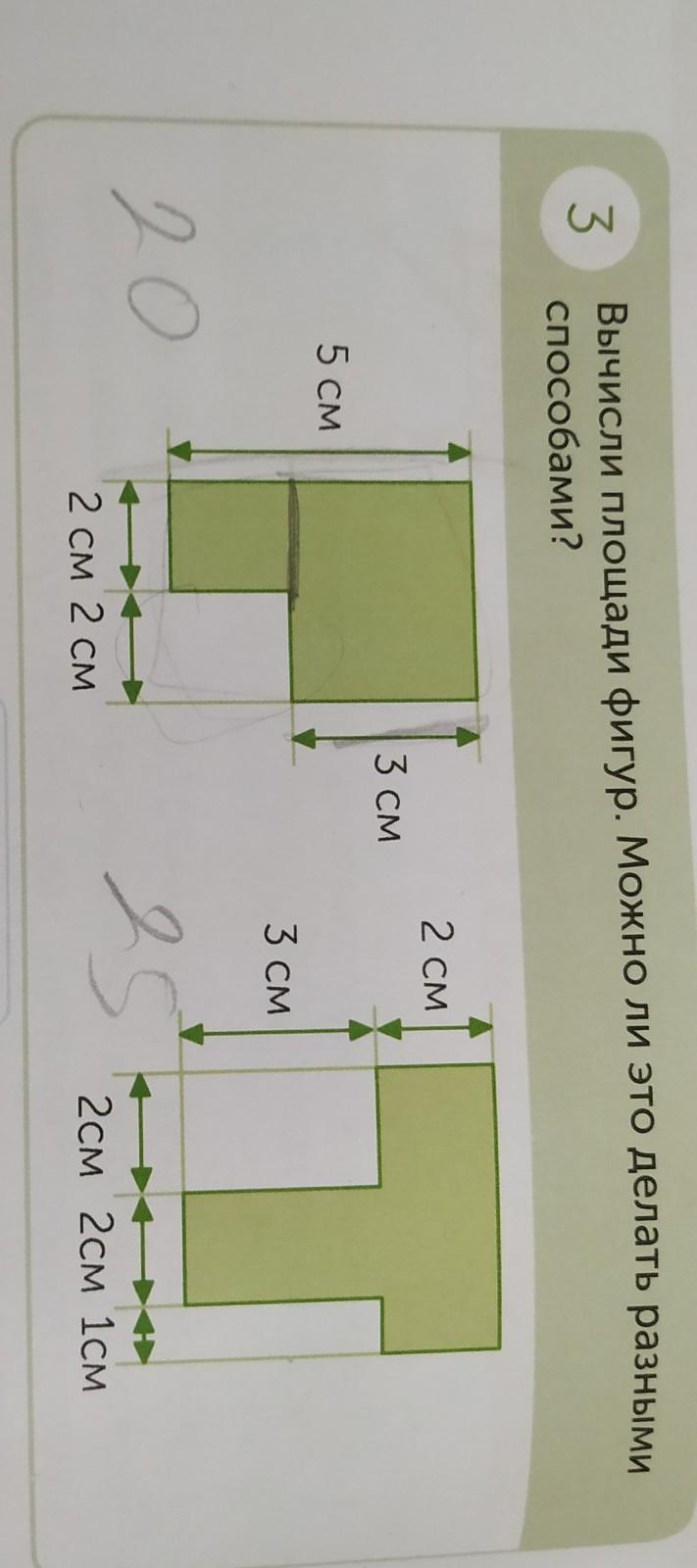 3 х (2+2) + (5-3) х 2 = 16 см²
