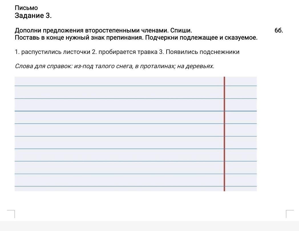 3.Из-под талого снега пробирается(сказуемое) травка(подлежащее).