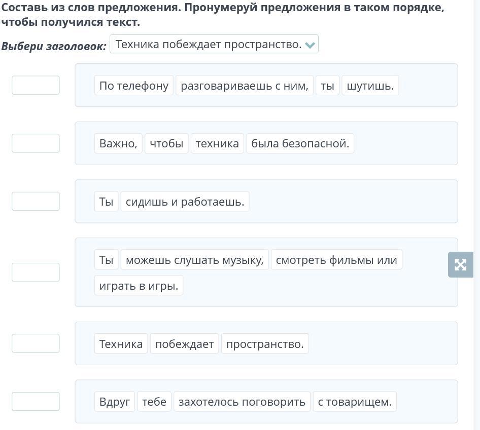 Составь из слов предложения. Пронумеруй предложения в таком порядке, чтобы получился текст.