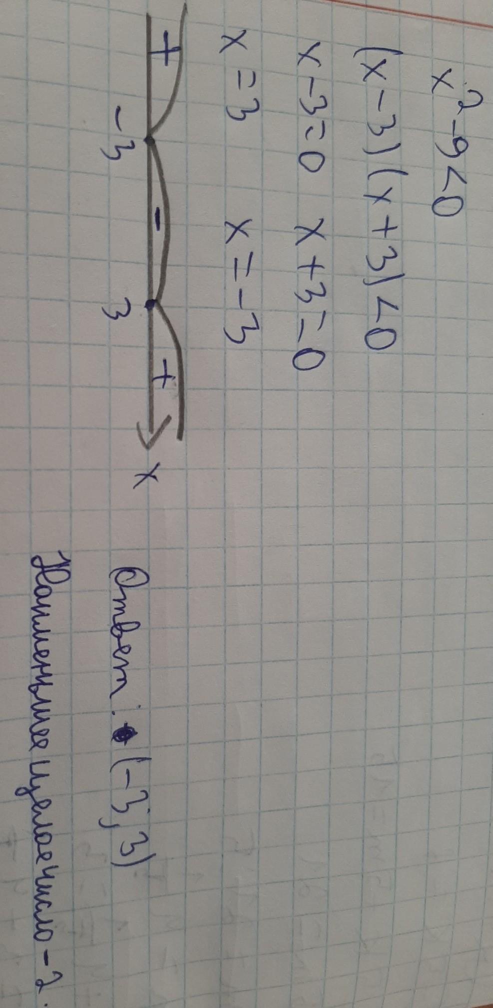 Решите неравенство методом интервалов x2 - 9 < 0. в ответе укажите наименьшее целое число, являющееся решением данного неравенства.