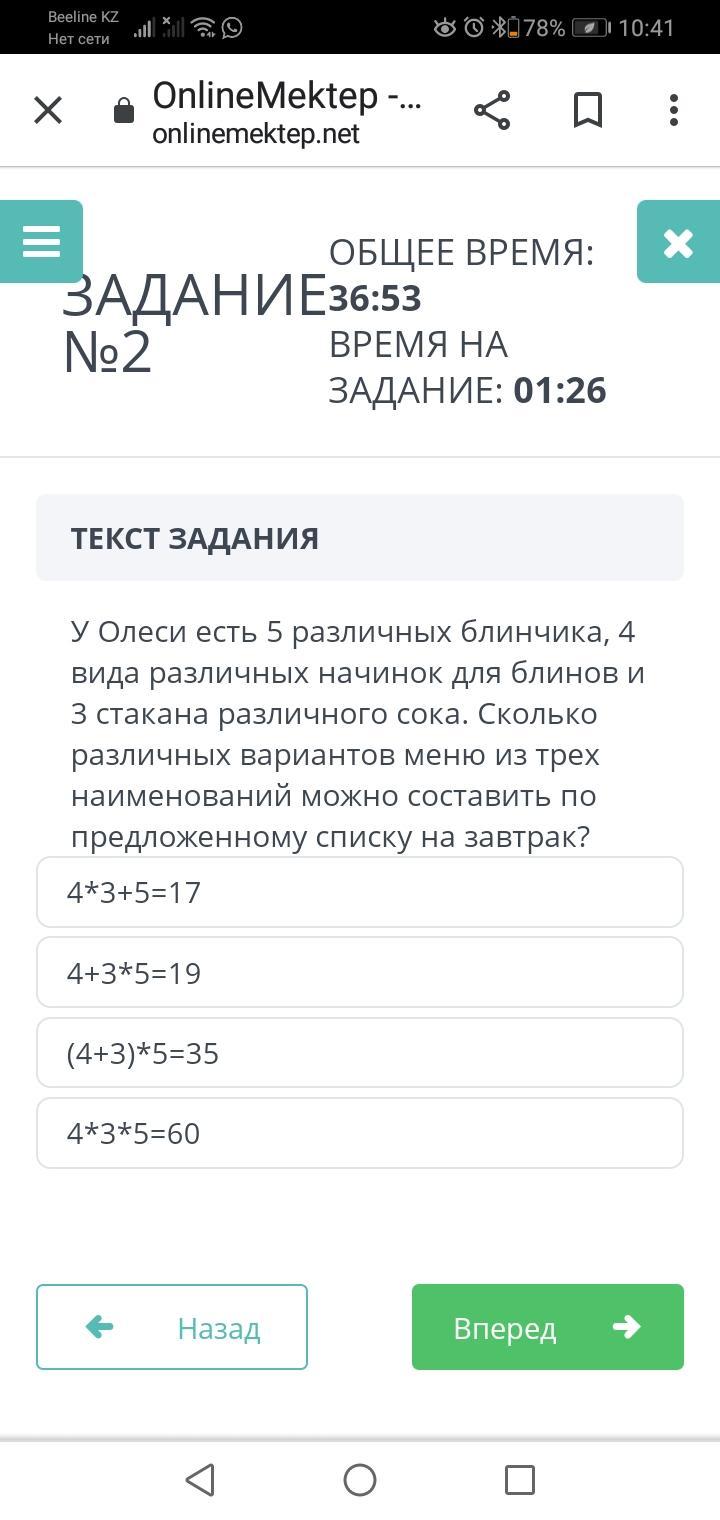 У Олеси есть 5 различных блинчика, 4 вида различных начинок для блинов и 3 стакана различного сока. Сколько различных вариантов меню из трех наименований можно составить по предложенному списку на завтрак?