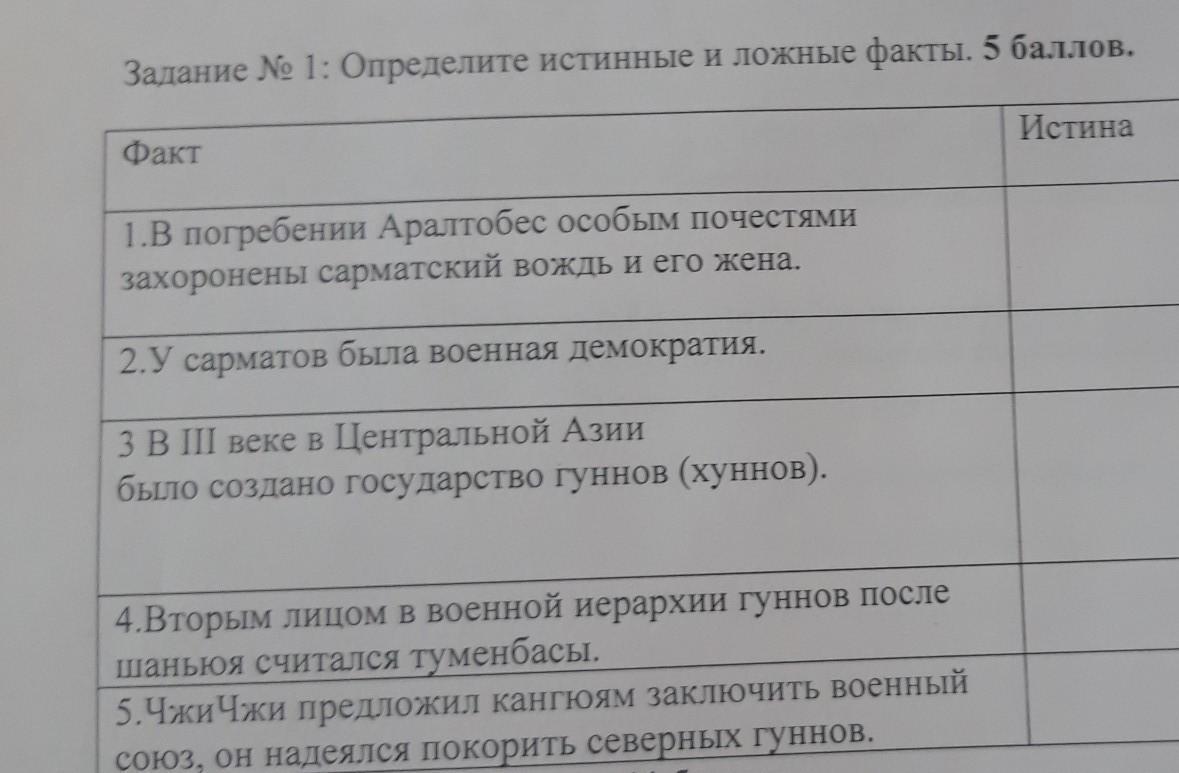 Задание № 1: Определите истинные и ложные факты. 5 баллов.