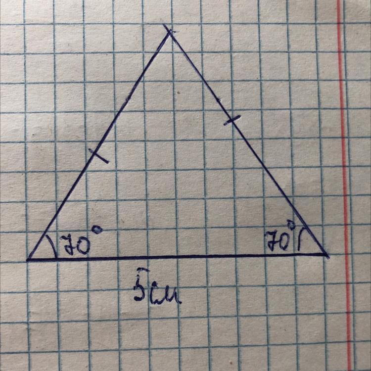 Постройке равнобедренный треугольник с основанием 5см и углом при основании 70°