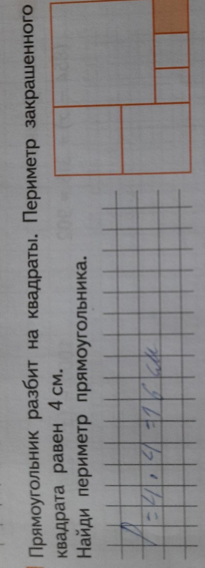 Прямоугольник разбит на квадраты. Периметр закрашенного