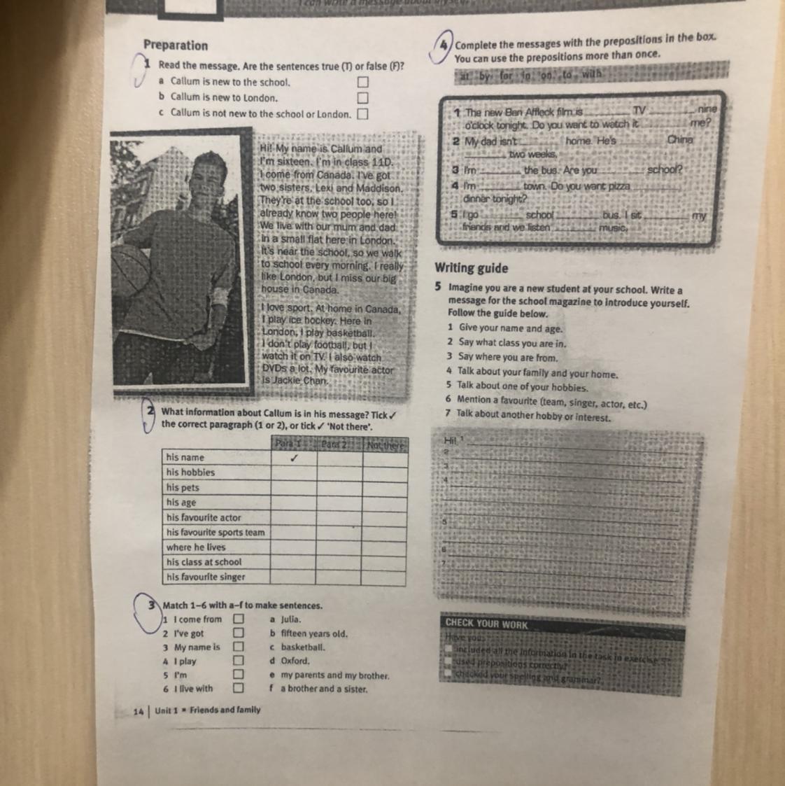 3. I come from Oxford; I've got a brother and a sister; My name is Julia; I play basketball; I'm fifteen years old; I live with my parents and my brother