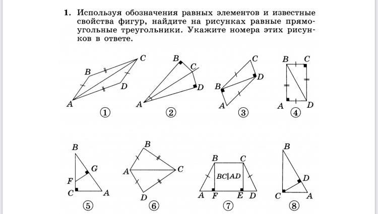 7) △AFB=△DEC равенство гипотенуз и катетов