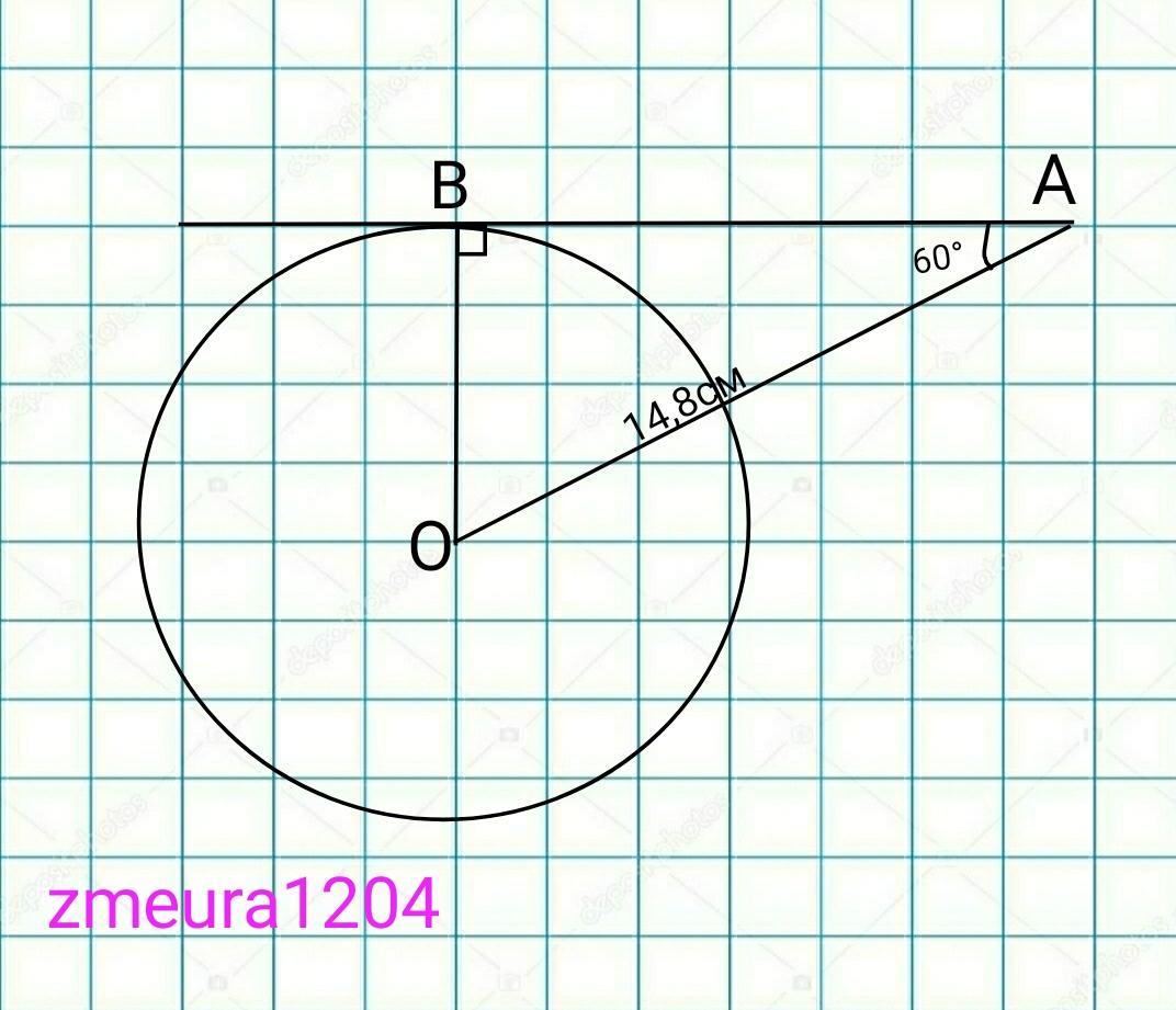 Прямая AB касается окружности с центром в точке O радиуса r в точке B.Найдите AB (в см), если известно, что AO=14,8см, ∠OAB = 60^0.