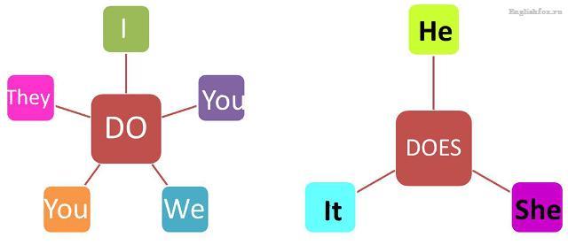 Объяснение: с местоимениями You/We/They/I чтобы показать отрицание, мы используем do not (don’t), с местоимениями He/She/It — does not (doesn’t)