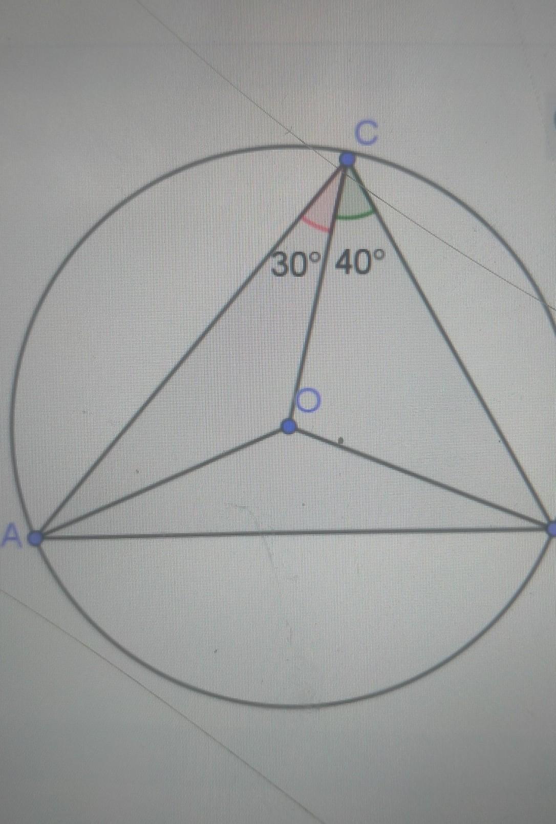 если АО=СО; ВО=СО; АО=ВО, то уголСАО=углуАСО=30, значит уголАОС=180-(30+30)=180-60=120