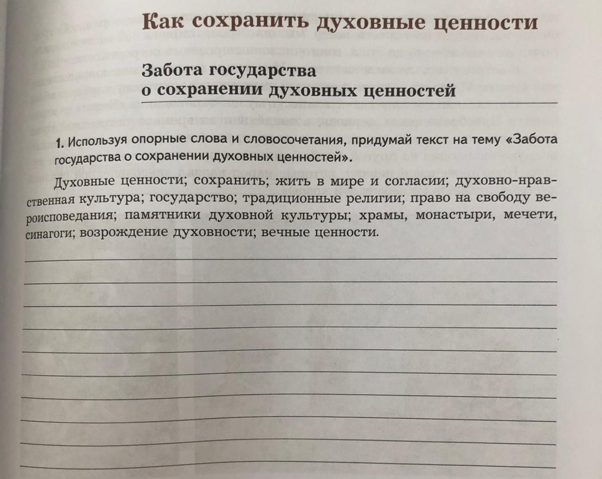 надо сохранять духовные ценности, жить в мире и согласии, ведь без этого не наступит долгожданное равновесие в будущем. так же государство должно сохранять традиционные религии, ни одна страна/государство не обходилось без традиций и религий своего народа. в абсолютно каждой стране или республике есть хотя-бы несколько храмов, монастырей, мечетей и синагоги. я уже рассказывал(-а), что нужно сохранять духовные ценности, но не только их мы должны оберегать, но ещё и памятники духовной культуры.