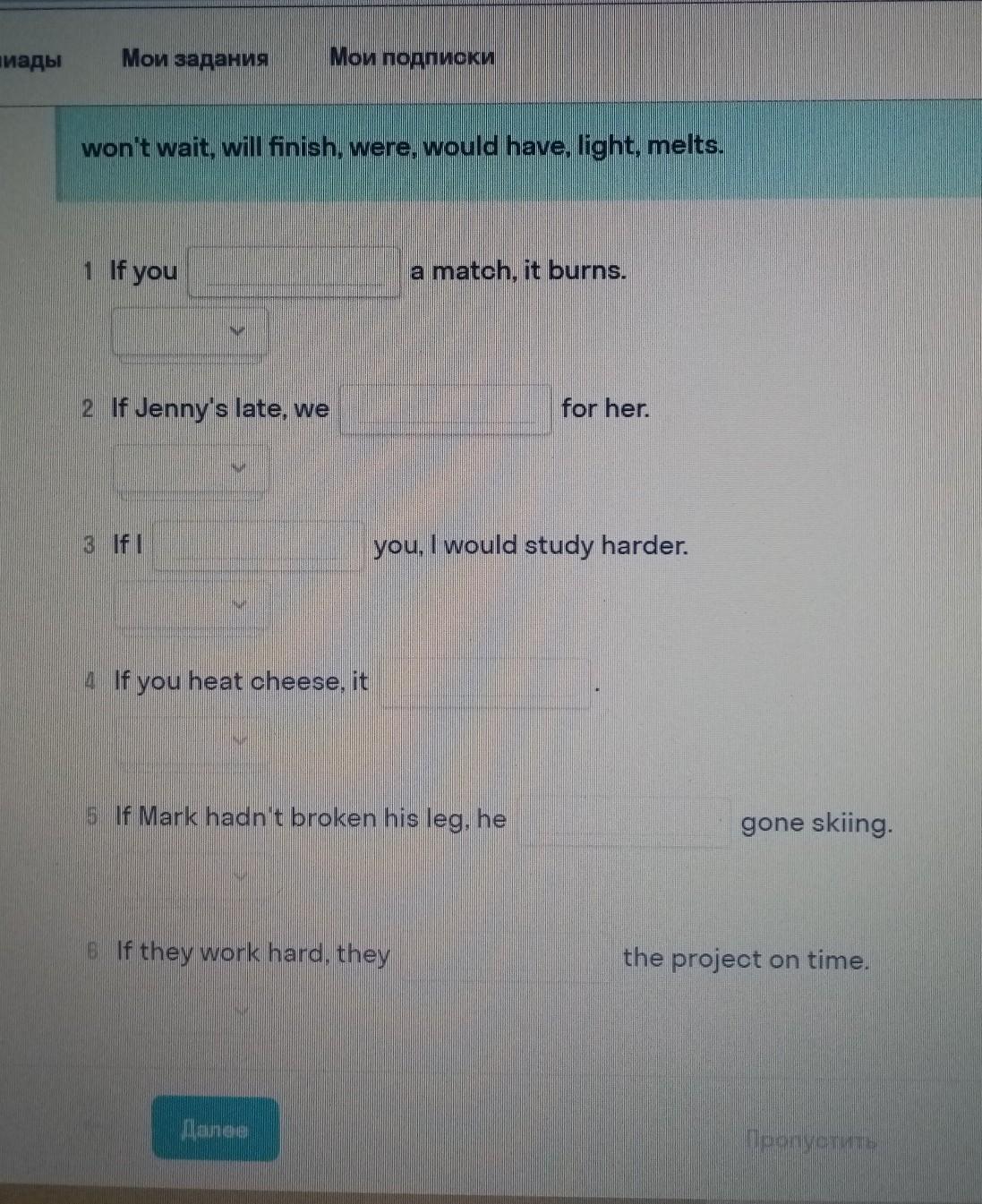 complete the sentences with the given verbs. Choose the correct type of conditionals