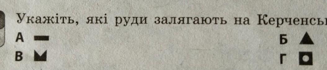 На території Керченського пів острова находится Керченський залізорудний басейн. Умовна позначка заліза — трикутник.