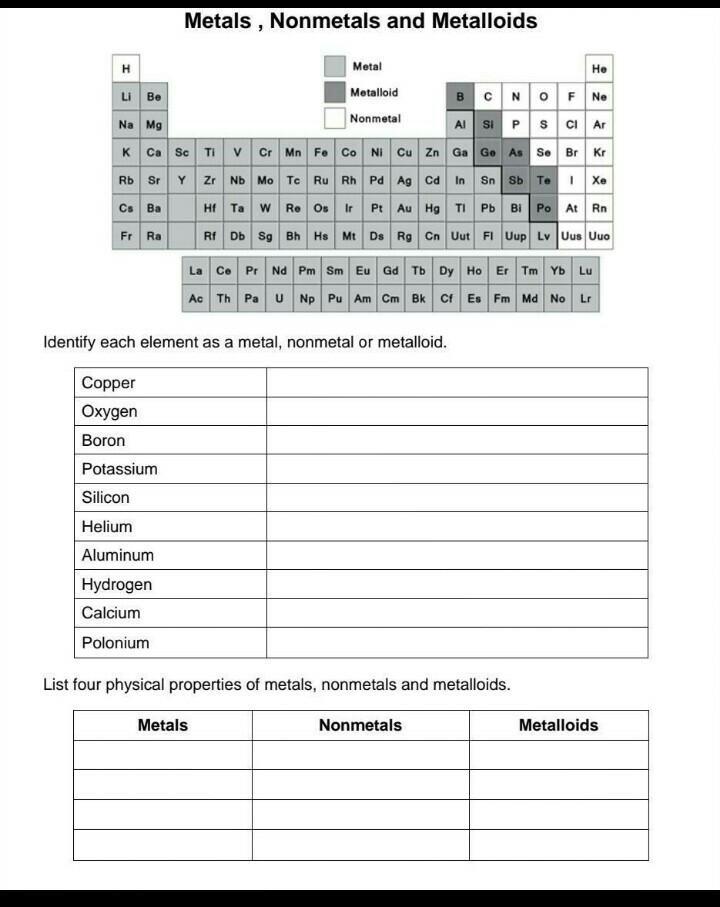 1) Определите каждый элемент как металл, неметалл или металлоид.