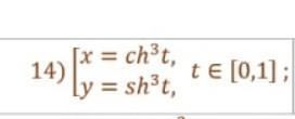 L = ∫₀¹√ [(x'(t))² + y'(t))²]dt = ∫₀¹3/2 sh2t √(ch2t ) dt =3/2∫₀¹(1/2 √ch2t d(ch2t))=
