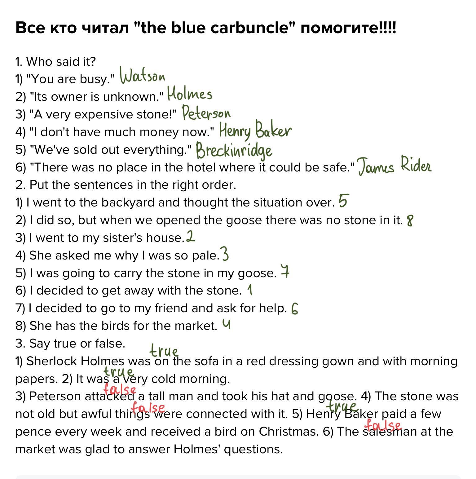 3) Peterson attacked a tall man and took his hat and goose. 4) The stone was not old but awful things were connected with it. 5) Henry Baker paid a few pence every week and received a bird on Christmas. 6) The salesman at the market was glad to answer Holmes' questions.