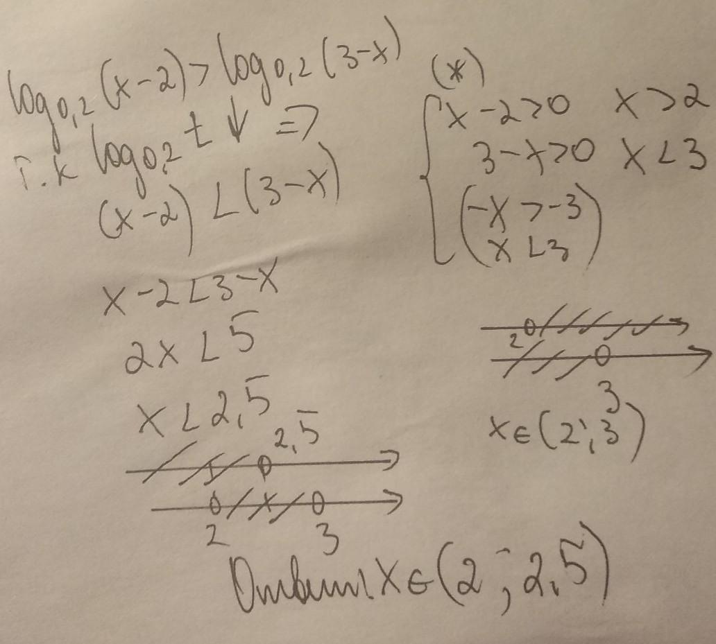log0.2 (x-2) > log0.2 (3-x)