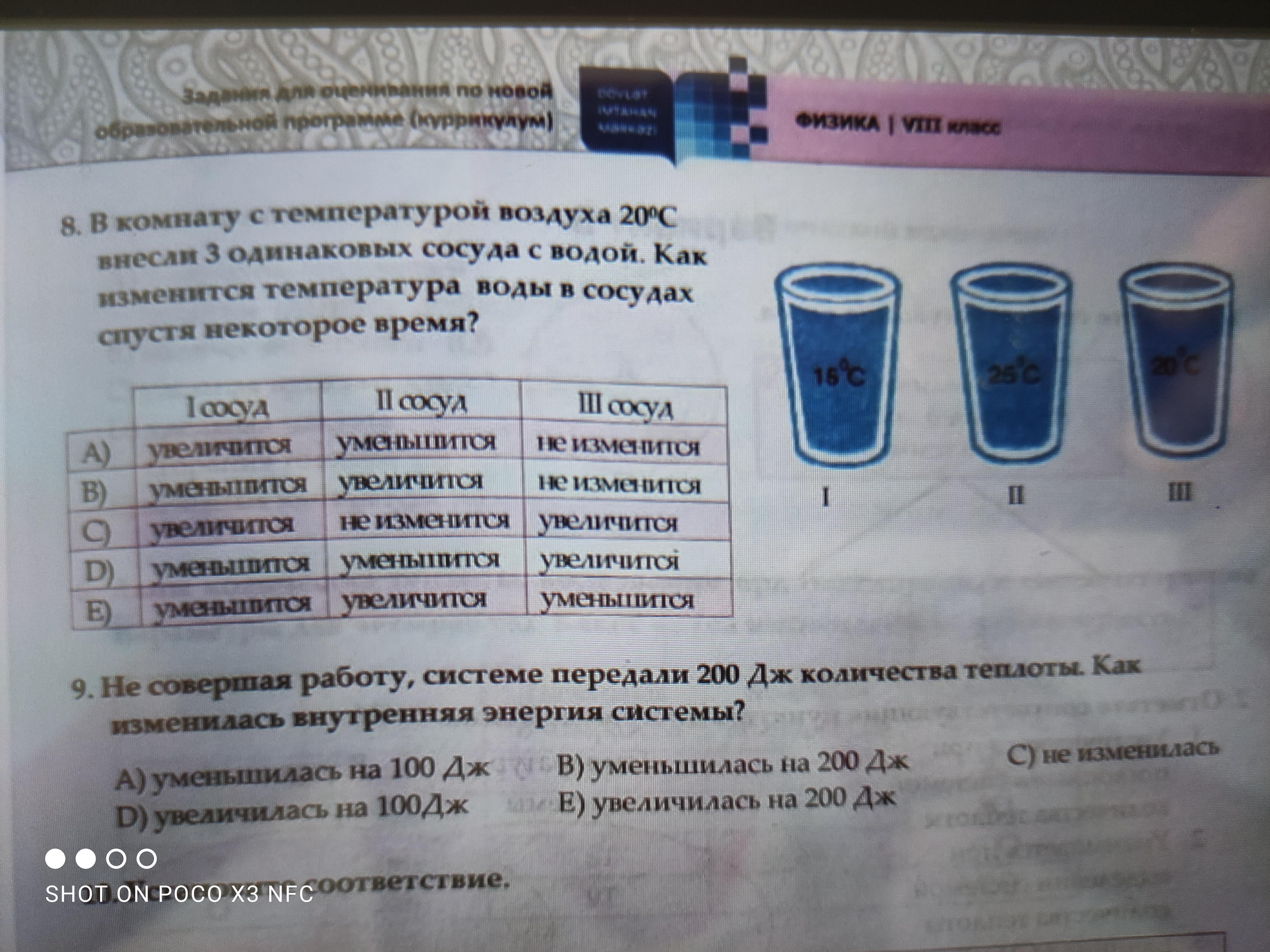 Можете помочь с 8 .в первом стакане 15°,во втором 25°,в третьем 20°