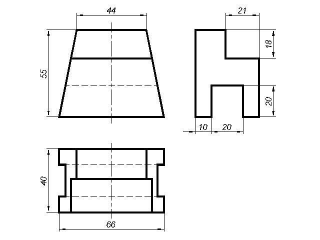 Помогите построить третий вид и аксонометрию по двум заданным видам
