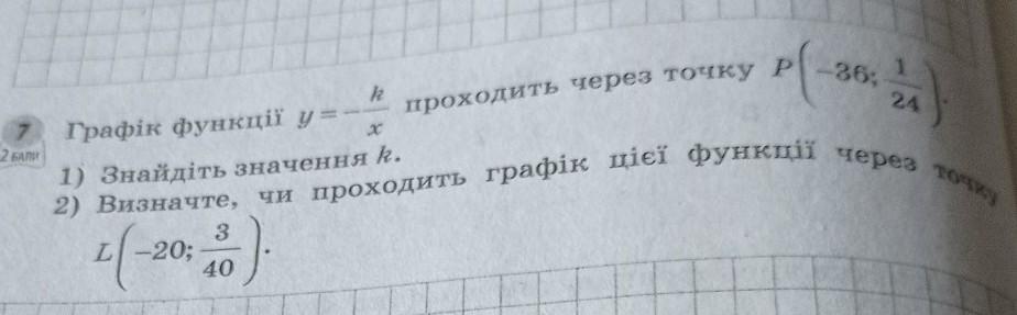 график функции проходит через точку Р. 1) Найдите значение к. 2) Определить проходит ли график функции через точку L