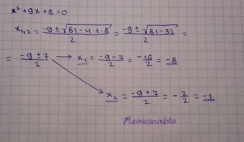 х²+9х+8=0 решить уравнение