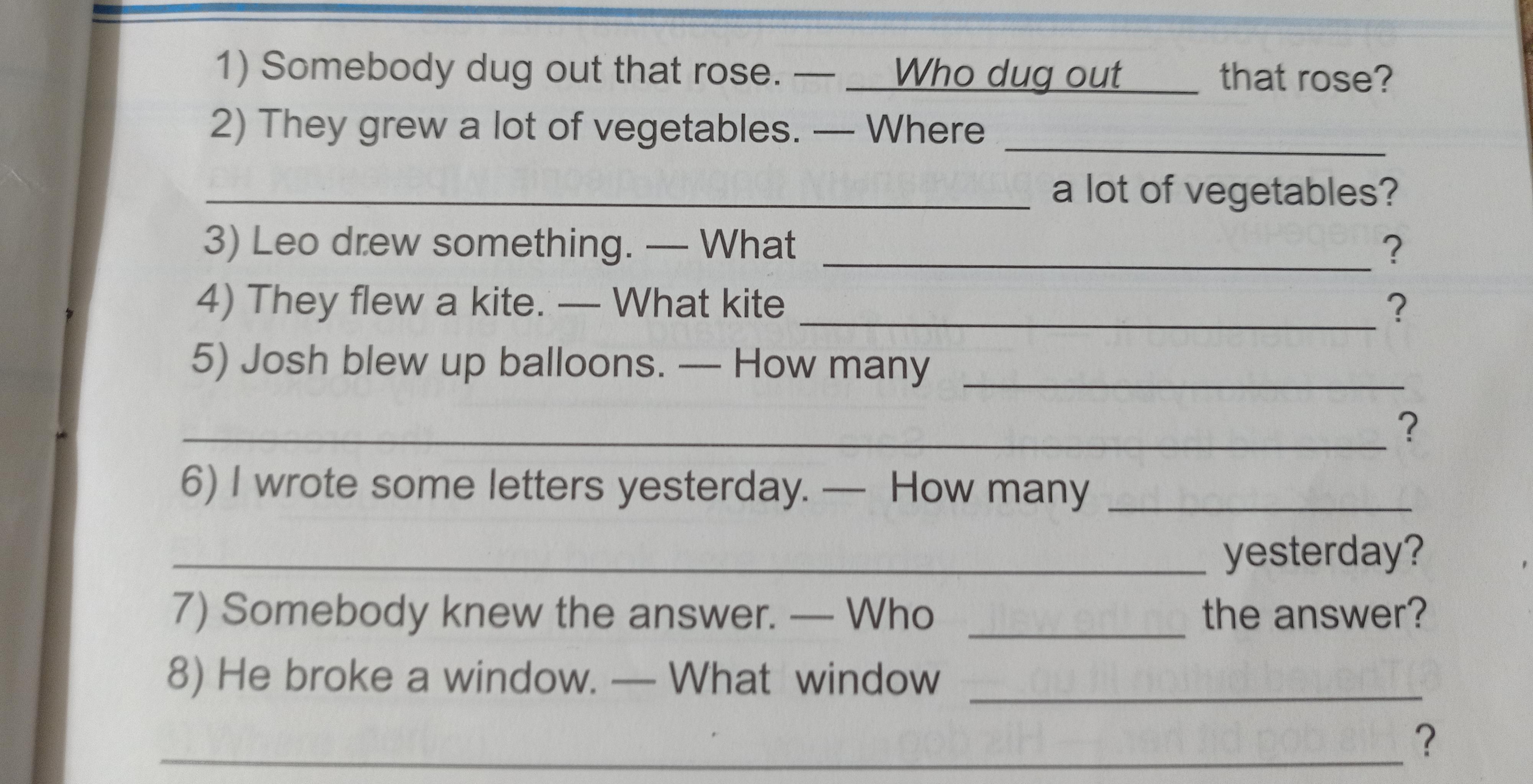 6) how many letters you wrote yesterday?