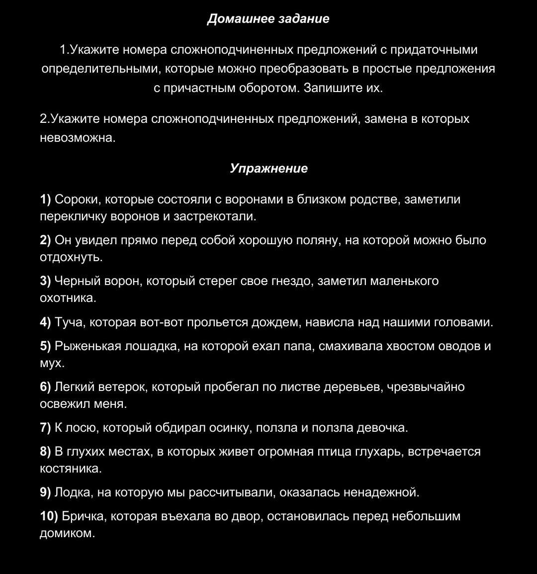 2. задания я сделал, мне учительница сказала, что тут только 4 невозможно. И как по мне это 2,5,8 и 9. А вот 1. задание где надо заменить причастным оборотом сложновато, помогите пожалуйста..