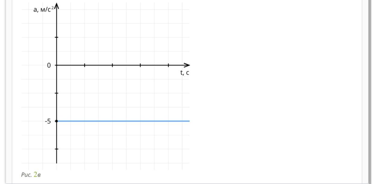 Среди рисунков 2а, 2б, 2в и 2г выбери тот, график ускорения на котором соответствует графику скорости, изображённому на рисунке 1.