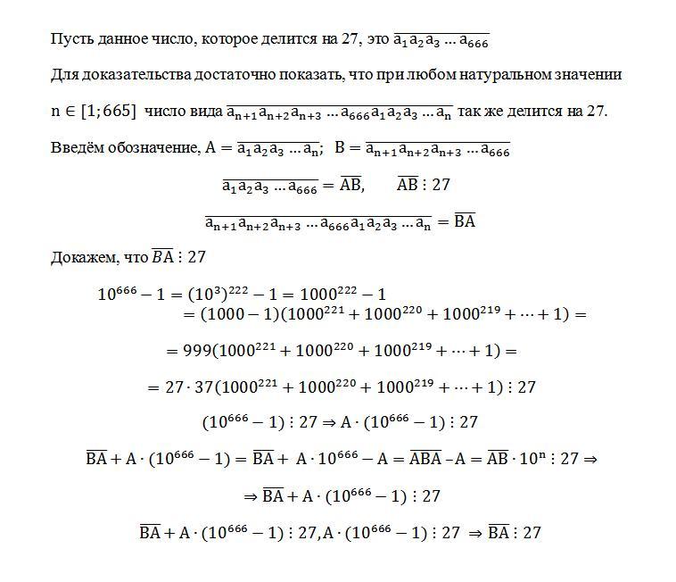 Таким образом: 10^666 -1 делится на 27, при этом N1 также делиться на 27, а значит N2 делится на 27.