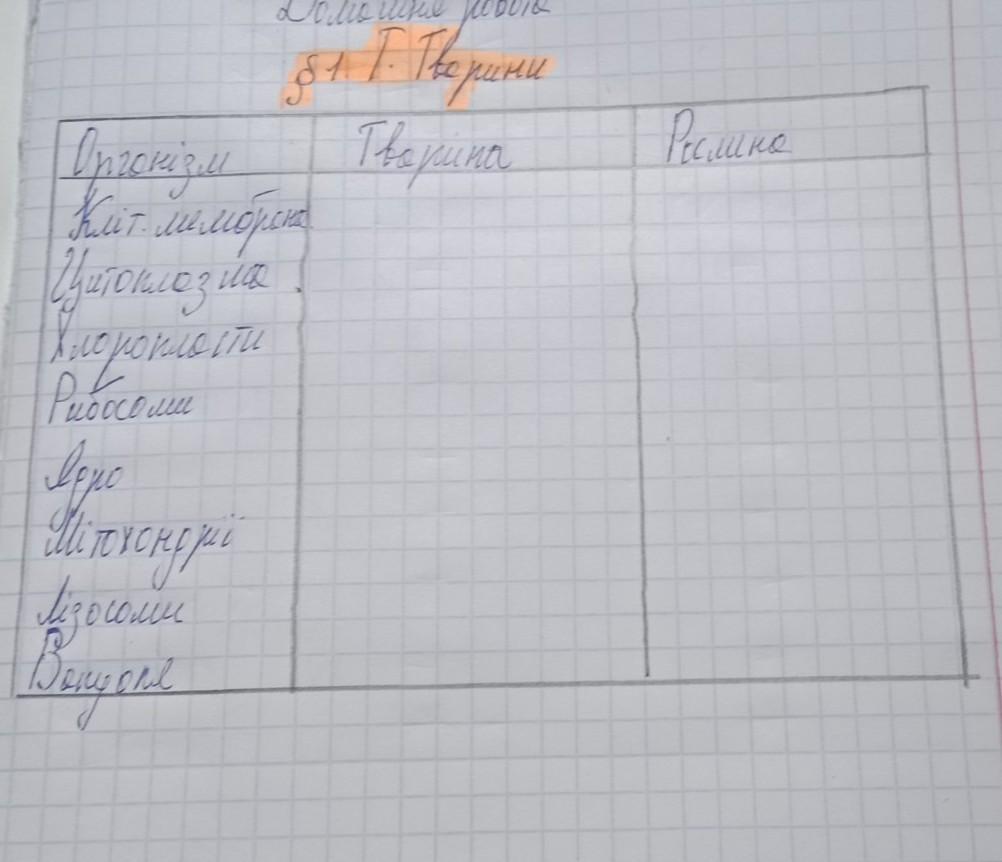 Нужно написать животное или растение у которых есть (из первого столбика)