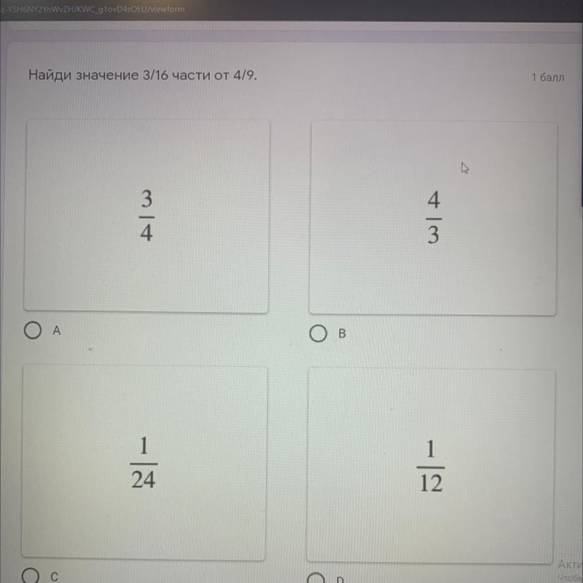 Ответ : Д) 1/12