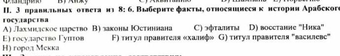 3 правильных ответа из 8: 6 выберите факты относящиеся к Арабскому государству