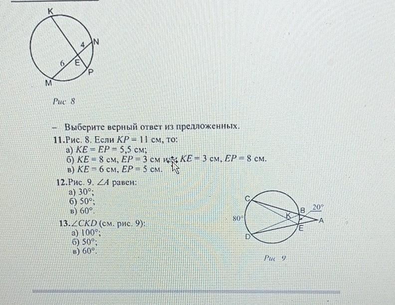 11) КЕ*ЕР = 4*6 = 24 по свойству пересекающихся хорд.