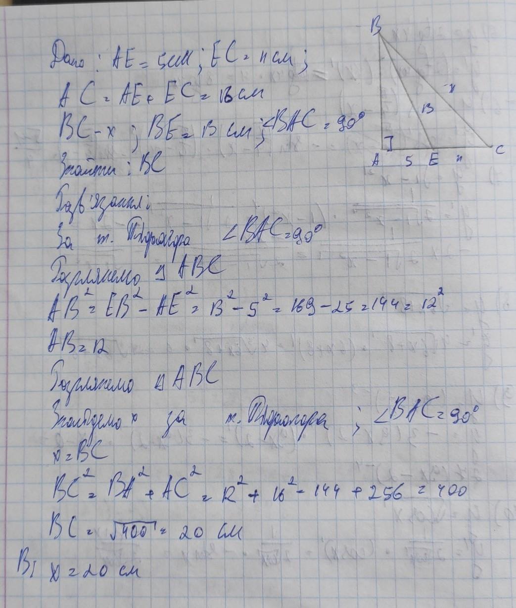Сначала рассматриваем первый треугольник за т. Пифагора, затем второй таким же образом.