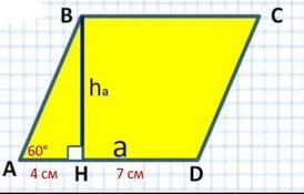 катет, лежащий против угла в 30° вдвое короче гипотенузы, значит наша гипотенуза АВ ΔABH (она же сторона параллелограмма )