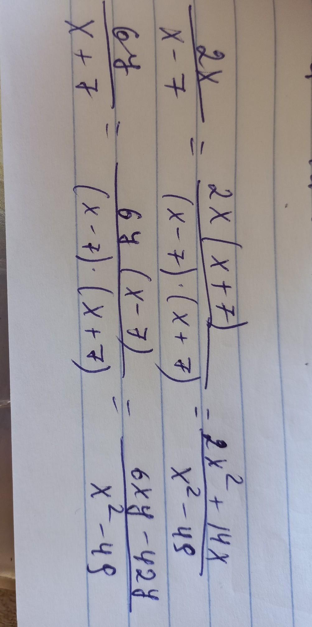 ОСРОЧНО Приведи дроби 2x/x−7 и 6y/x+7 к общему знаменателю
