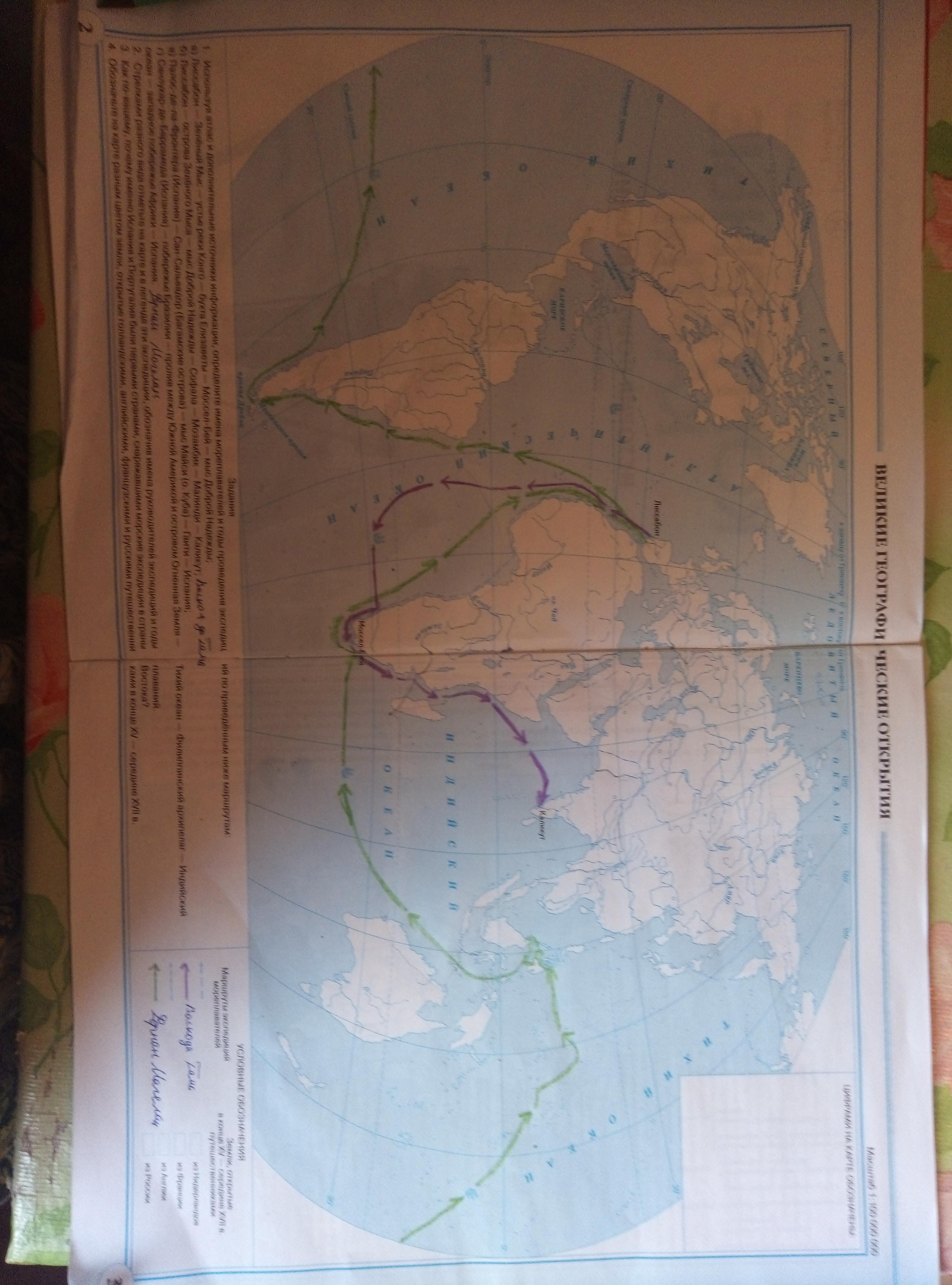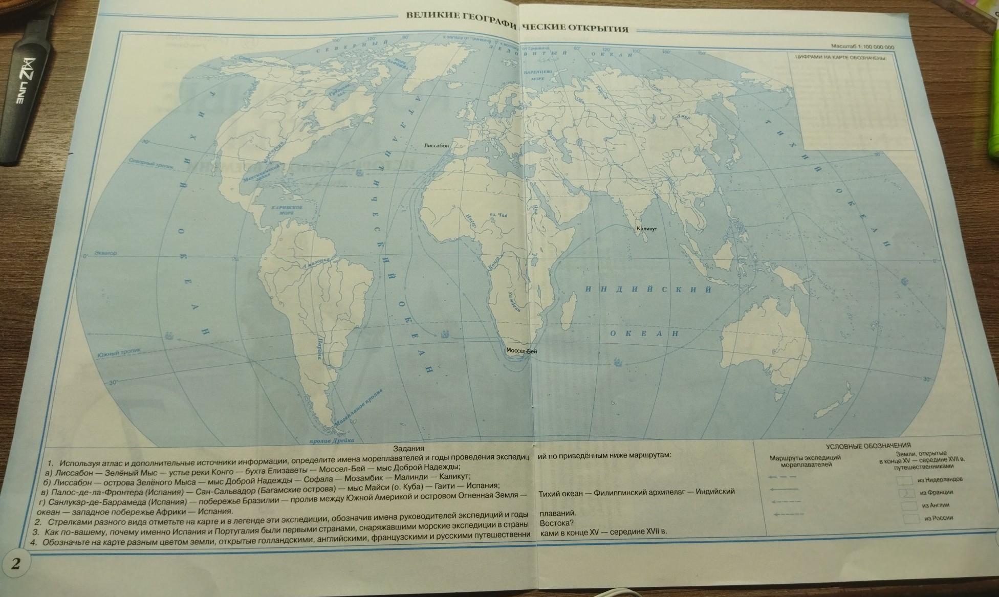 1. Используя атлас и дополнительные источники информации, определите имена мореплавателей и годы проведения экспедиц а) Лиссабон - Зелёный Мыс - устье реки Конго - бухта Елизаветы — Моссел-Бей - мыс Доброй Надежды; б) Лиссабон - острова Зелёного Мыса — мыс Доброй Надежды — Софала — Мозамбик — Малинди — Каликут; в) Палос-де-ла-Фронтера (Испания) Сан-Сальвадор (Багамские острова) мыс Майси (о. Куба) — Гаити — Испания; г) Санлукар-де-Баррамеда (Испания) — побережье Бразилии — пролив между Южной Америкой и островом Огненная Земля океан - западное побережье Африки - Испания. 2. Стрелками разного вида отметьте на карте и в легенде эти экспедиции, обозначив имена руководителей экспедиций и годы 3. Как по-вашему, почему именно Испания и Португалия были первыми странами, снаряжавшими морские экспедиции в страны 4. Обозначьте на карте разным цветом земли, открытые голландскими, английскими, французскими и русскими путешественни Тихий океан – Филиппинский архипелаг — Индийский из Франции из Англии плаваний. Востока? ками в конце XV — середине XVII в. из России 2 3 ПОМОГИТЕ ПОЖАЛУЙСТА!!!!!!!!!!!!