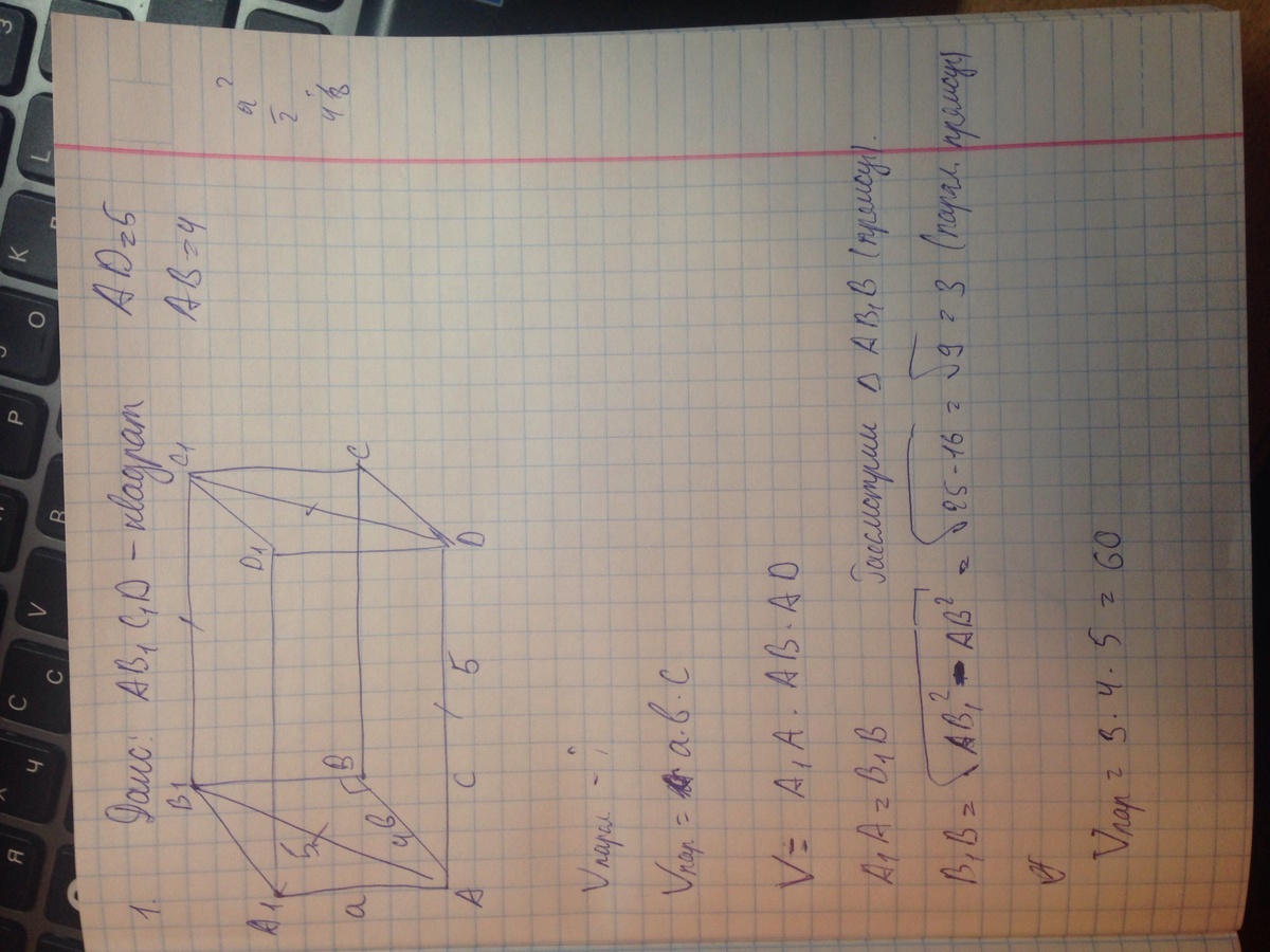ABCDA1B1C1D1-прямоугольный параллелепипед.Найдите объем параллелепипеда
