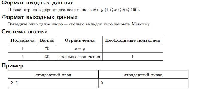 Максим просит у вас помощи, выведите, сколько вкладок ему надо закрыть, чтобы компьютер