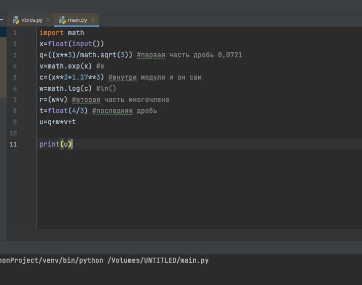 Подскажите, что не так в моем коде! Нужно написать формулу из вложения и получить при вхоже х=0.5 значение справа. Я не могу его получить. Подскажите что не так